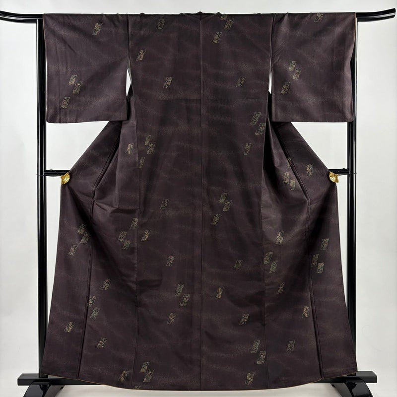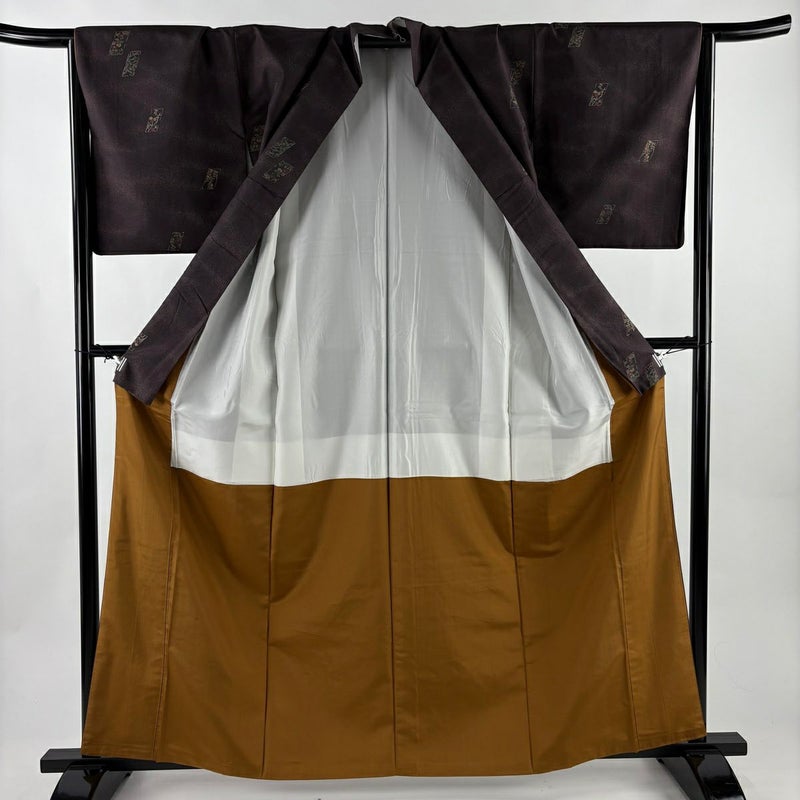 【小紋】 茶系 茶紫 名品 B 約160cm~約169cm 裄丈66cm (M)size 袖丈48cm 9990-29990 二万以下