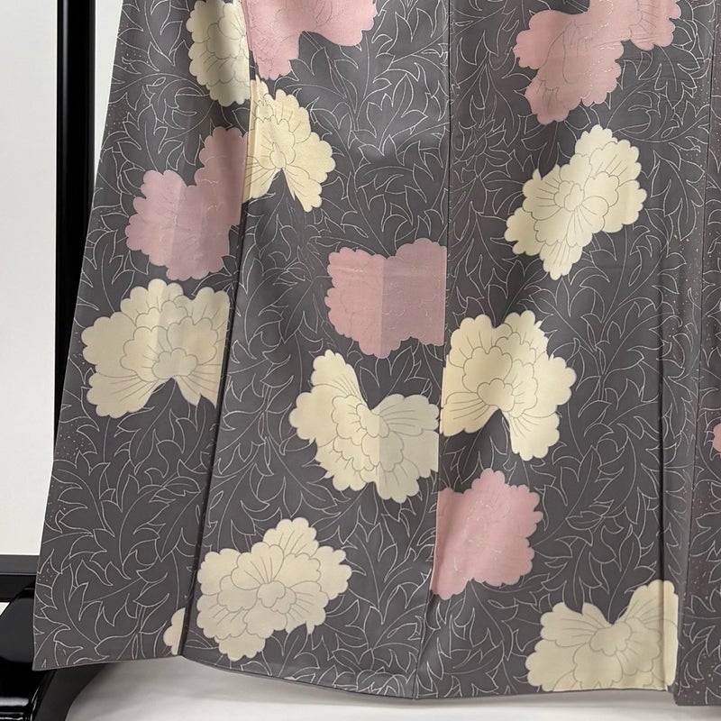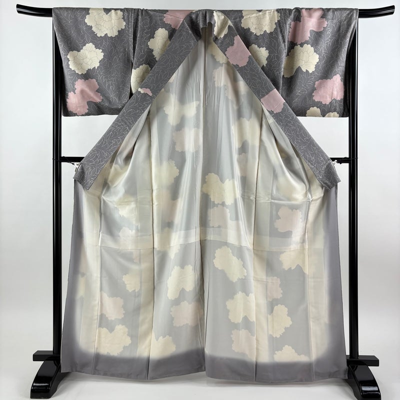 【着物ランク】逸品 【素材】正絹 【身丈】約165.5cm 【裄丈】約66.5cm 【袖丈】約49cm 【袖幅】約35cm 【前幅】約25cm 【後幅】約30cm 【サイズ】M 【着物仕立て】袷 【着用時期】10~5月 【状態ランク】ランクB 【着物着用シーン】気軽なパーティー、観劇、食事会、正月、気軽なお茶会、街着