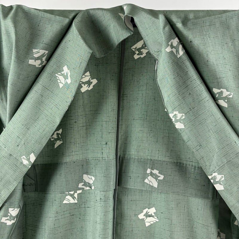 【小紋】 緑系 薄緑 逸品 A 約160cm~約169cm 裄丈66cm (M)size 袖丈49cm 30000- 美品 五万以下