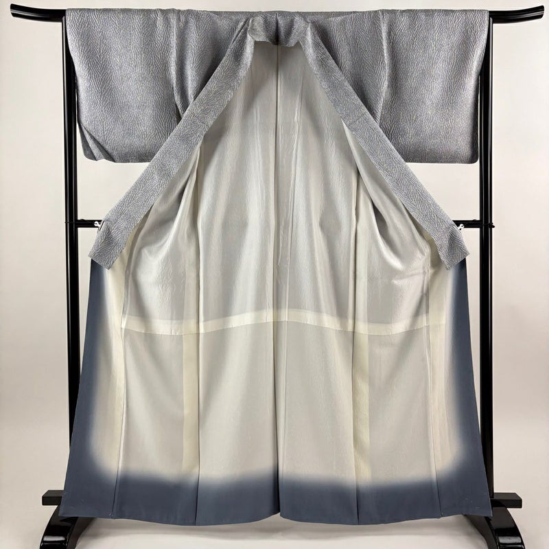 【小紋】 灰色系 青灰色 逸品 A 約160cm~約169cm 裄丈65cm (M)size 袖丈48cm 30000- 美品 五万以下