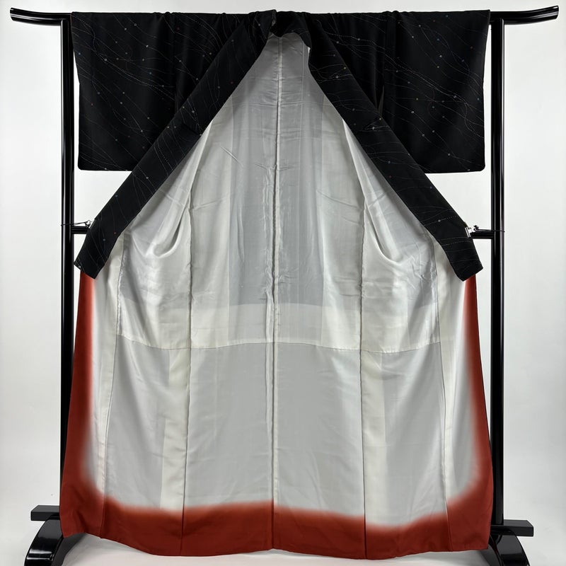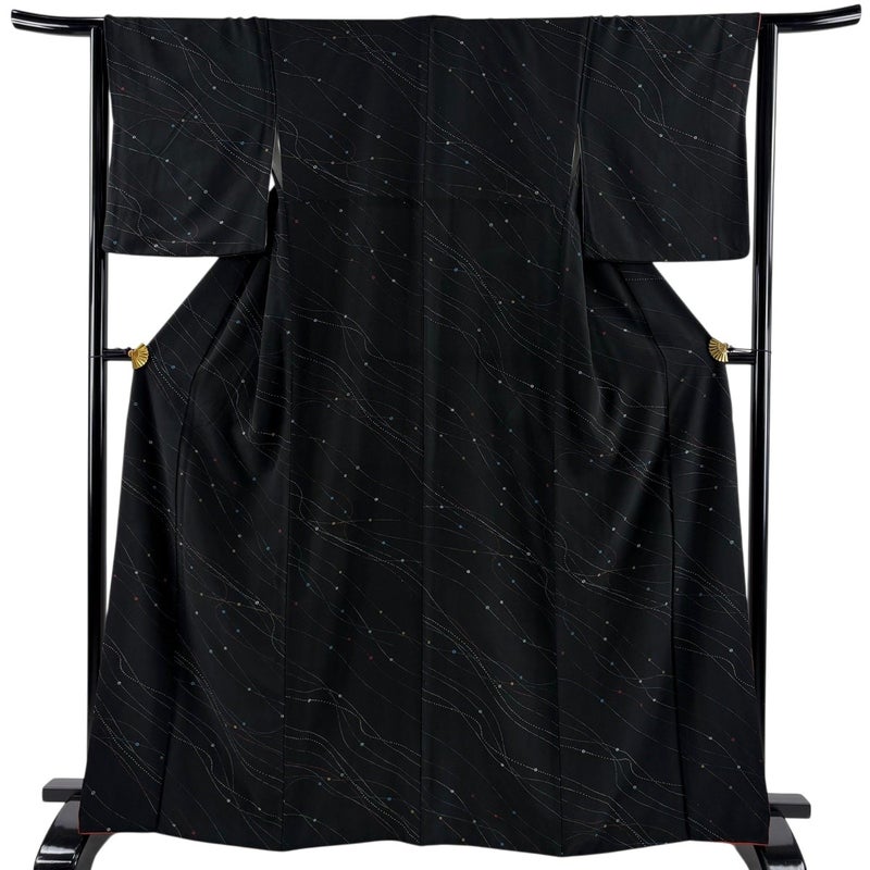 【小紋】 黒系 黒 優品 B 約160cm~約169cm 裄丈63cm-64cm (M)size 袖丈49cm -3980 二万以下