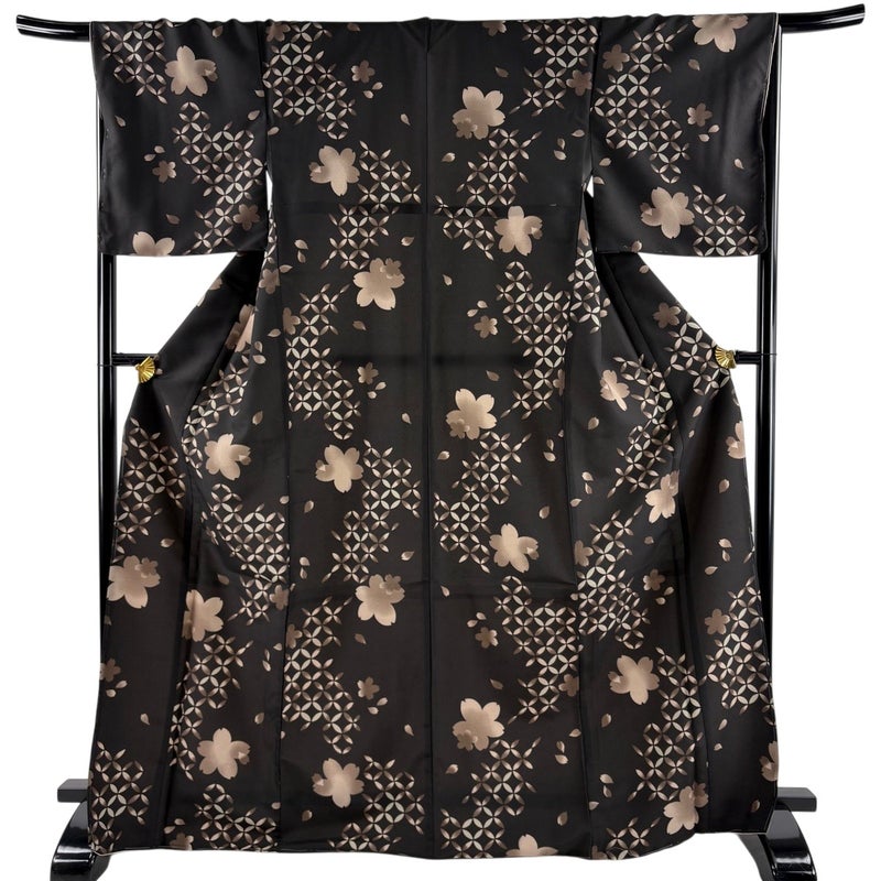 【着物ランク】優品 【素材】化繊 【身丈】約171cm 【裄丈】約68cm 【袖丈】約49cm 【袖幅】約33.5cm 【前幅】約24.5cm 【後幅】約31cm 【サイズ】L 【着物仕立て】袷 【着用時期】10~5月 【状態ランク】ランクA 【着物着用シーン】気軽なパーティー、観劇、食事会、正月、気軽なお茶会、街着