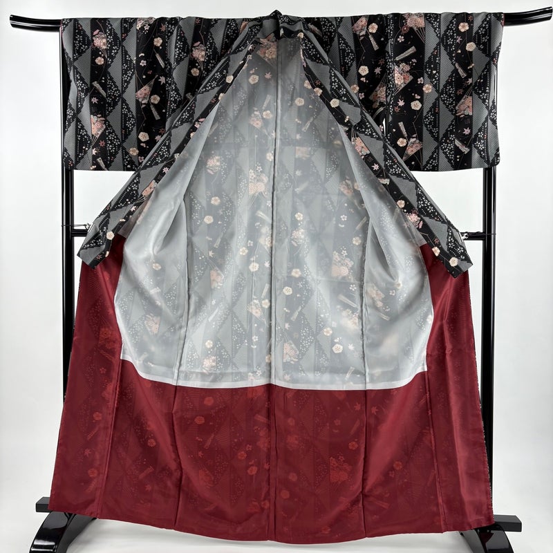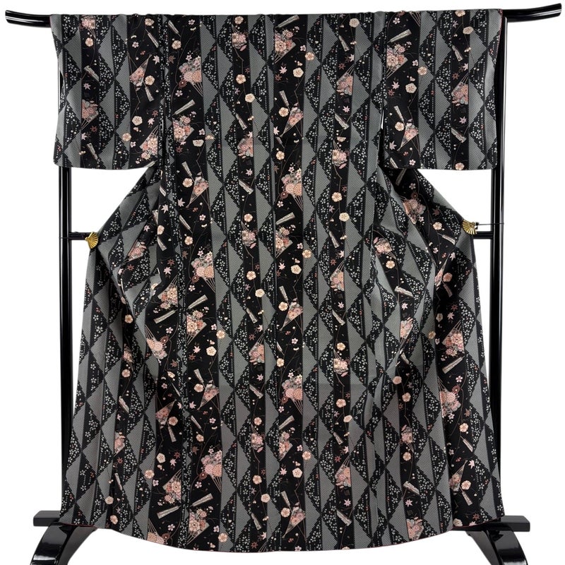 【小紋】 黒系 黒 優品 A 約160cm~約169cm 裄丈67cm-68cm (L)size 袖丈49cm 4000-7980 美品 二万以下