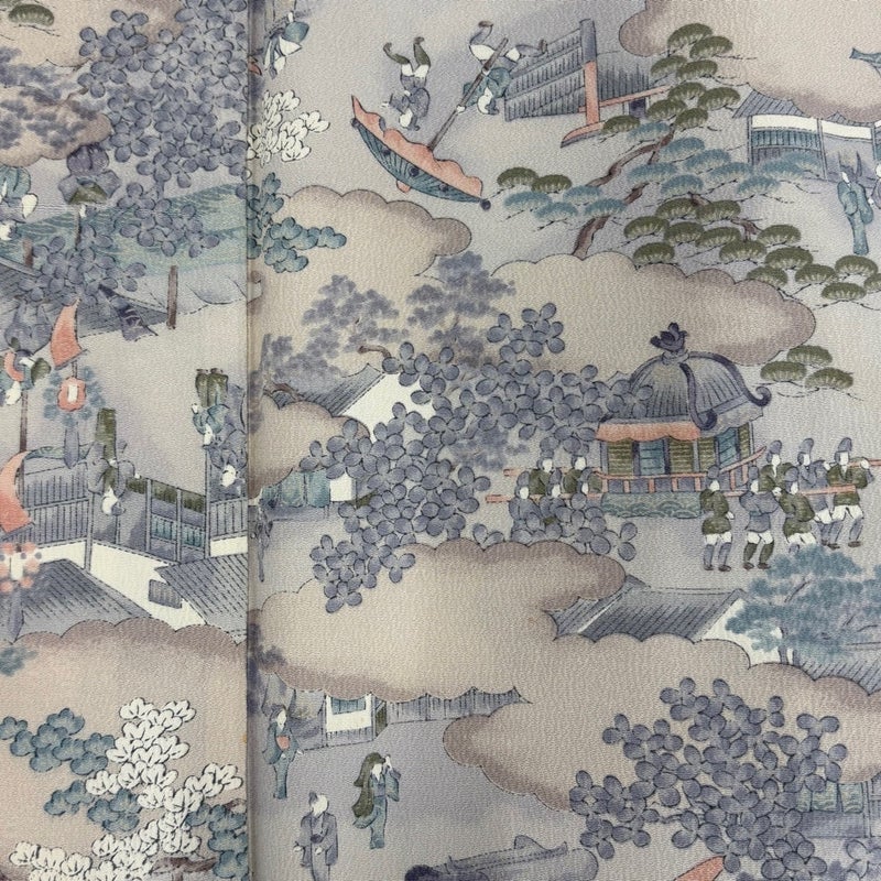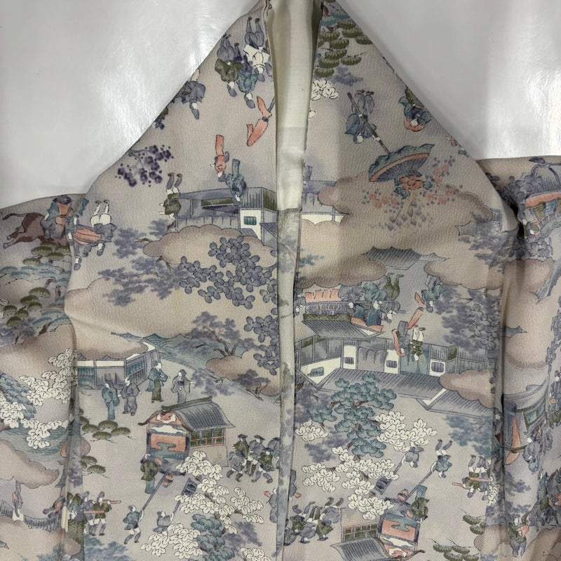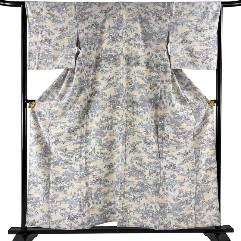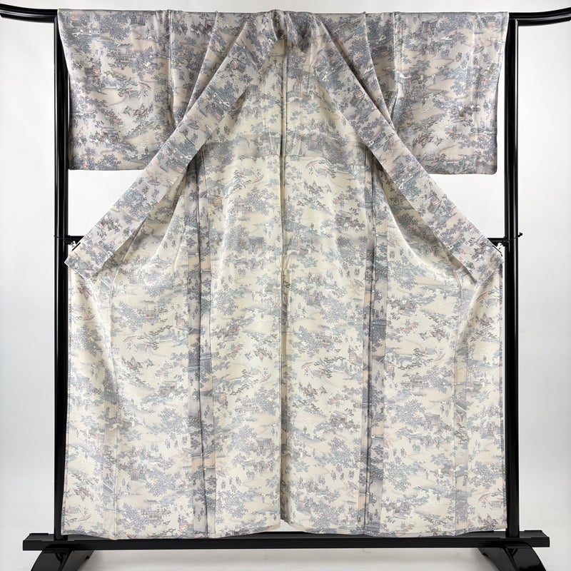 【着物ランク】優品 【素材】正絹 【身丈】約156cm 【裄丈】約66cm 【袖丈】約48cm 【袖幅】約33cm 【前幅】約27cm 【後幅】約31cm 【サイズ】M 【着物仕立て】単衣 【着用時期】6/9月 【状態ランク】ランクA 【着物着用シーン】気軽なパーティー、観劇、食事会、正月、気軽なお茶会、街着