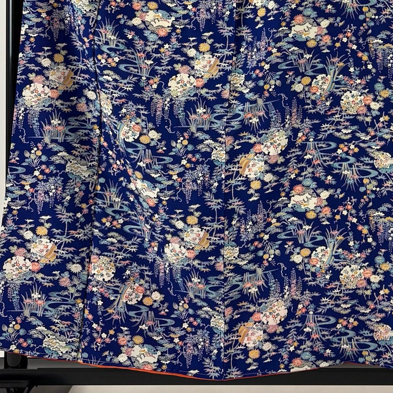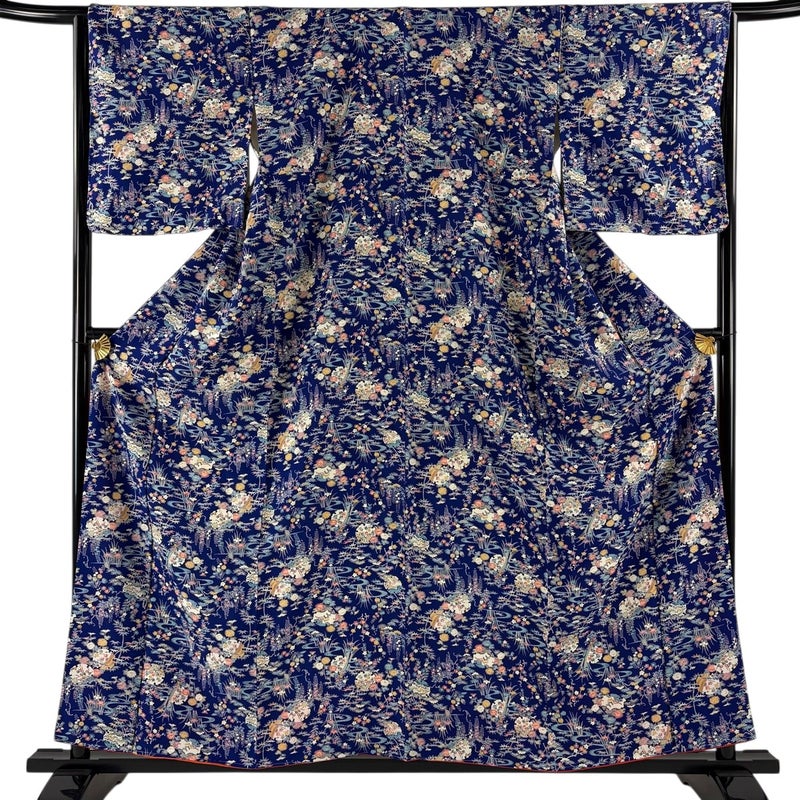 【着物ランク】優品 【素材】正絹 【身丈】約159.5cm 【裄丈】約65cm 【袖丈】約48.5cm 【袖幅】約33.5cm 【前幅】約25.5cm 【後幅】約30cm 【サイズ】M 【着物仕立て】袷 【着用時期】10~5月 【状態ランク】ランクB 【着物着用シーン】気軽なパーティー、観劇、食事会、正月、気軽なお茶会、街着