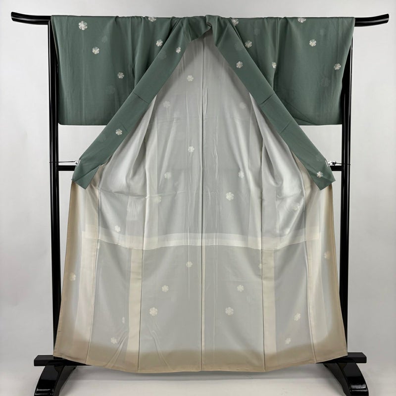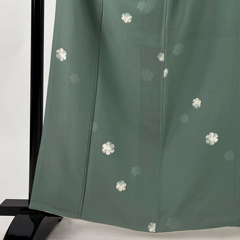 【小紋】 緑系 薄緑 秀品 B 約160cm~約169cm 裄丈67cm-68cm (M)size 袖丈48cm 4000-7980 二万以下