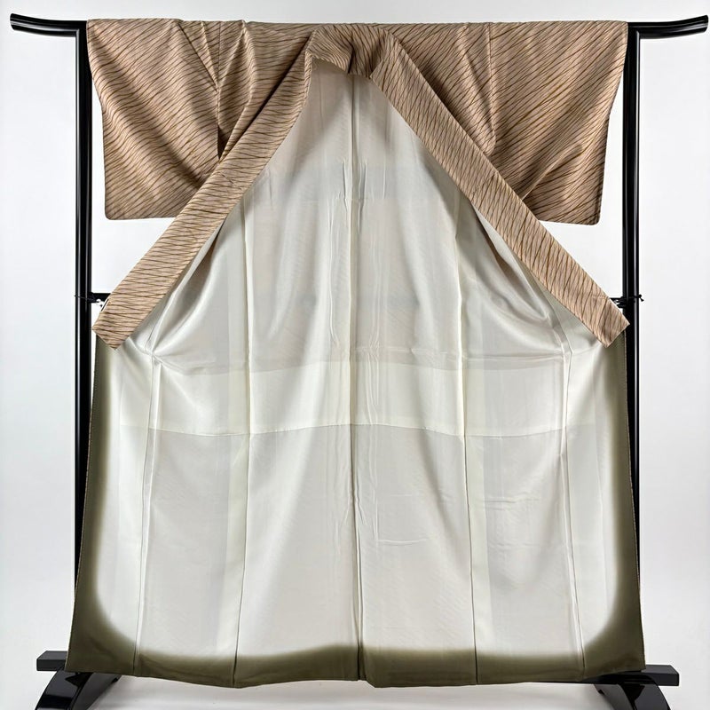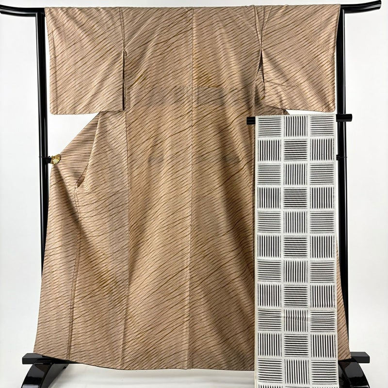 【小紋】 茶系 薄茶色 秀品 A 約160cm~約169cm 裄丈63cm-64cm (M)size 袖丈49cm 9990-29990 美品 五万以下