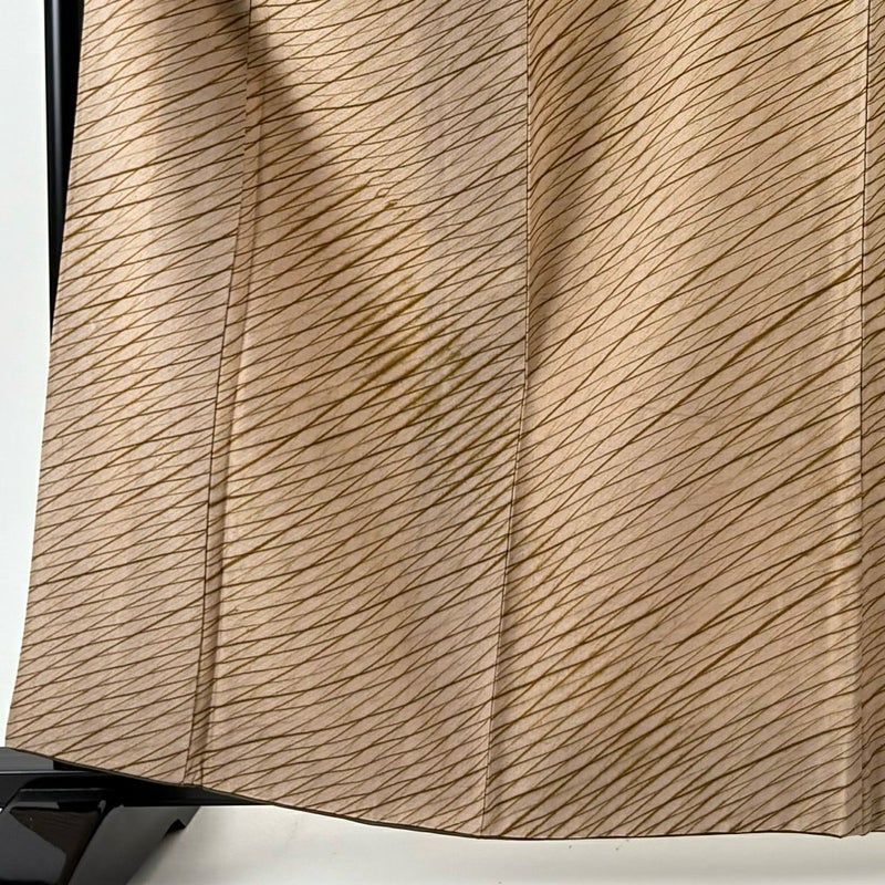 【着物ランク】秀品 【素材】正絹 【身丈】約163cm 【裄丈】約64cm 【袖丈】約49cm 【袖幅】約32cm 【前幅】約25cm 【後幅】約30.5cm 【サイズ】M 【着物仕立て】袷 【着用時期】10~5月 【帯丈2】約442cm 【帯幅2】約31cm 【状態ランク】ランクA 【着物着用シーン】気軽なパーティー、観劇、食事会、正月、気軽なお茶会、街着