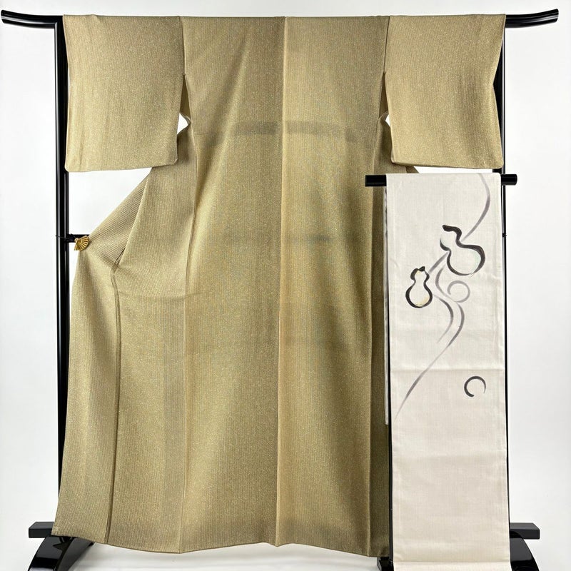 【着物ランク】秀品 【素材】正絹 【身丈】約164cm 【裄丈】約66cm 【袖丈】約48.5cm 【袖幅】約34cm 【前幅】約22.5cm 【後幅】約29cm 【サイズ】M 【着物仕立て】袷 【着用時期】10~5月 【帯丈2】約458cm 【帯幅2】約30.5cm 【状態ランク】ランクA 【着物着用シーン】気軽なパーティー、観劇、食事会、正月、気軽なお茶会、街着