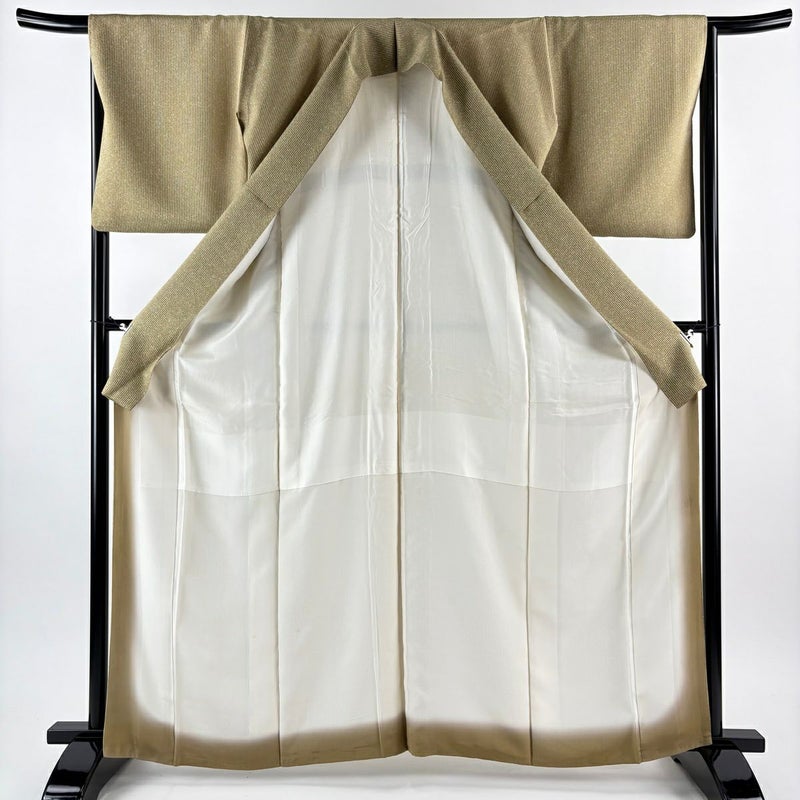 【小紋】 茶系 茶緑色 秀品 A 約160cm~約169cm 裄丈66cm (M)size 袖丈48cm 9990-29990 美品 五万以下