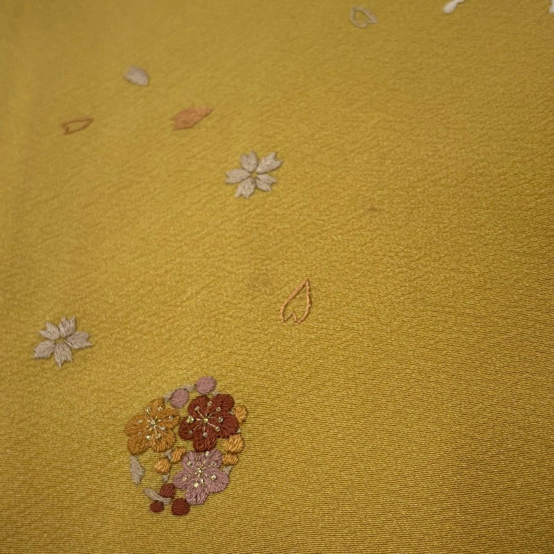 【小紋】 黄色系 からし色 名品 C 約150cm~約159cm 裄丈63cm-64cm (M)size 袖丈50cm-60cm 9990-29990 二万以下