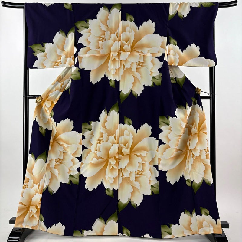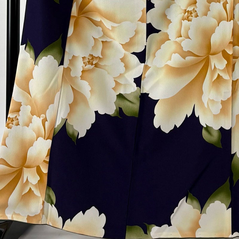 【着物ランク】優品 【素材】化繊 【身丈】約166.5cm 【裄丈】約68cm 【袖丈】約48cm 【袖幅】約34cm 【前幅】約24cm 【後幅】約30cm 【サイズ】L 【着物仕立て】袷 【着用時期】10~5月 【状態ランク】ランクA 【着物着用シーン】気軽なパーティー、観劇、食事会、正月、気軽なお茶会、街着