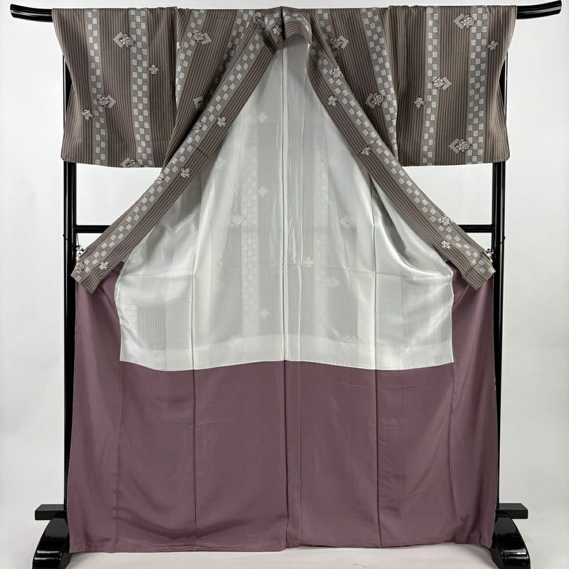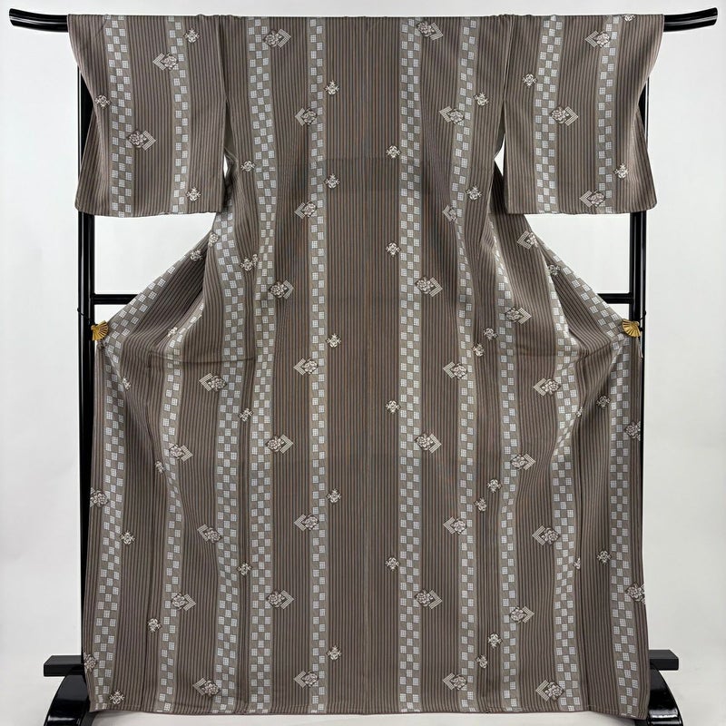 【小紋】 茶系 茶色 優品 A 約170cm~約179cm 裄丈69cm以上 (L)size 袖丈49cm 4000-7980 美品 二万以下