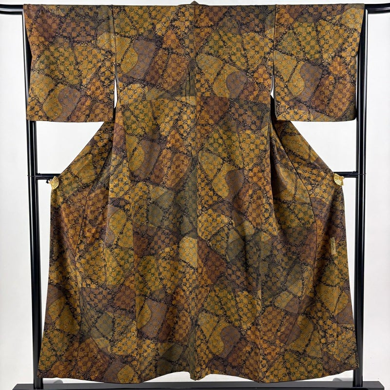 【小紋】 黄色系 山吹茶色 逸品 C 約140cm~約149cm 裄丈66cm (M)size 袖丈46cm以下 30000- 五万以上
