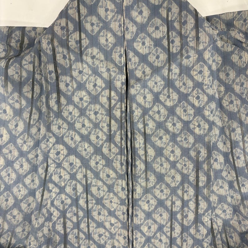【着物ランク】名品 【素材】正絹 【身丈】約156cm 【裄丈】約63cm 【袖丈】約45cm 【袖幅】約32cm 【前幅】約25cm 【後幅】約28cm 【サイズ】S 【着物仕立て】薄物 【着用時期】7~8月 【状態ランク】ランクB 【着物着用シーン】気軽なパーティー、観劇、食事会、正月、気軽なお茶会、街着