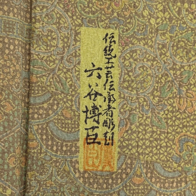 【着物ランク】名品 【素材】正絹 【身丈】約156.5cm 【裄丈】約61cm 【袖丈】約48.5cm 【袖幅】約32cm 【前幅】約22.5cm 【後幅】約29cm 【サイズ】S 【着物仕立て】単衣 【着用時期】6/9月 【状態ランク】ランクA 【作家名】六谷博臣 【着物着用シーン】気軽なパーティー、観劇、食事会、正月、気軽なお茶会、街着