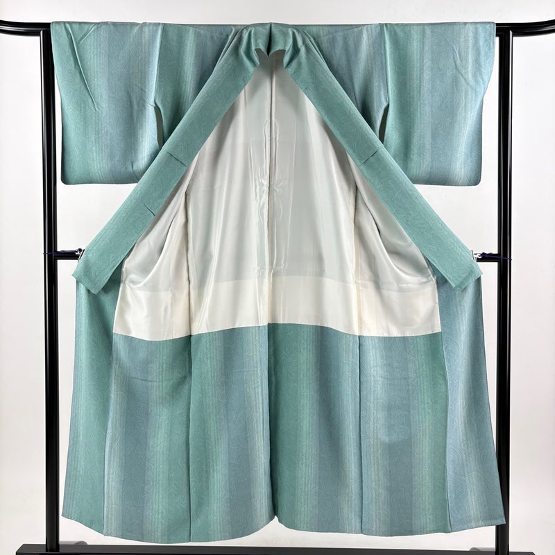 【小紋】 青系 薄青緑 秀品 A 約150cm~約159cm 裄丈62cm以下 (S)size 袖丈46cm以下 7990-9980 美品 二万以下