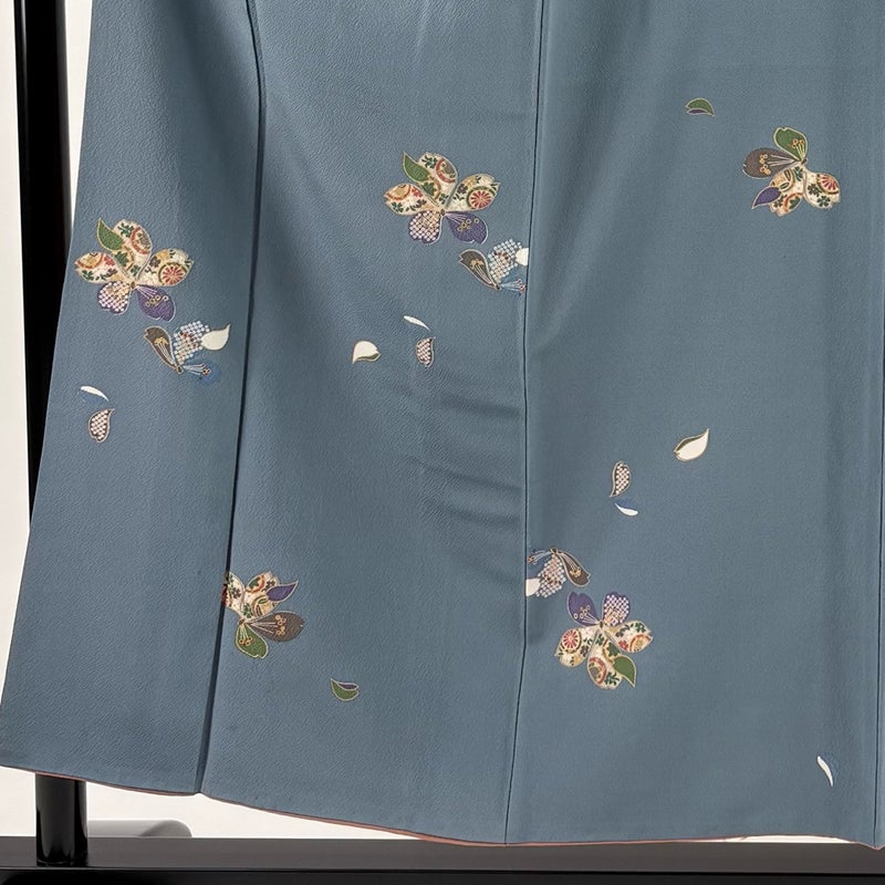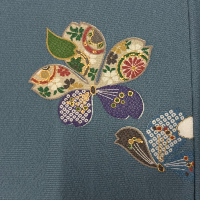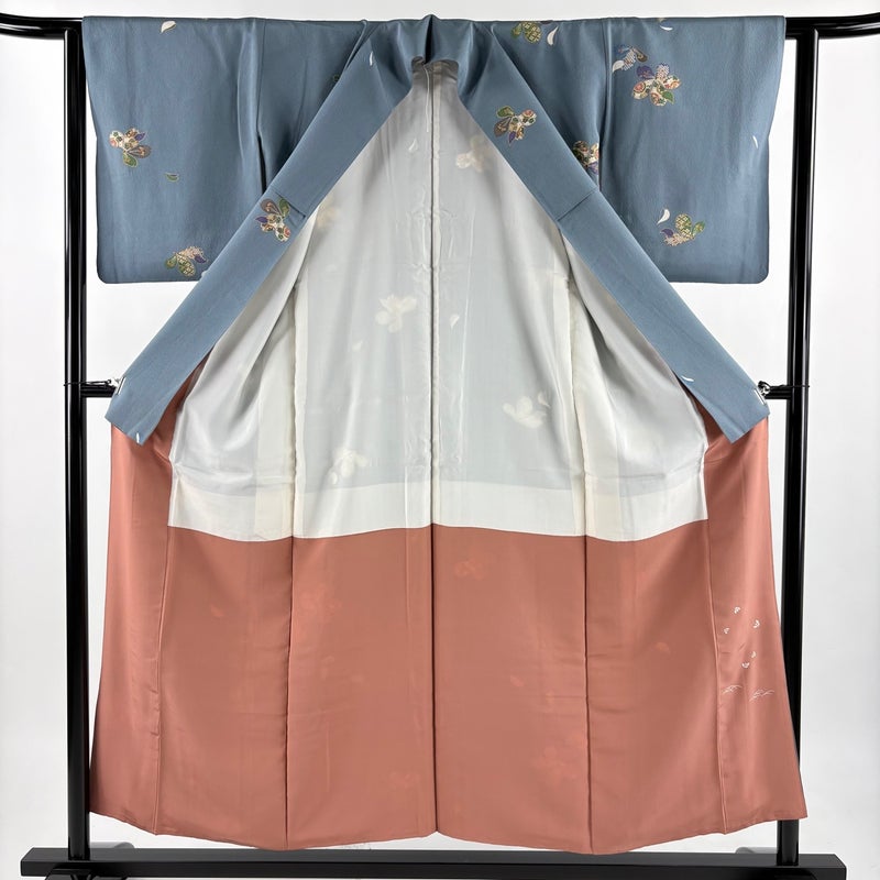 【着物ランク】秀品 【素材】正絹 【身丈】約154.5cm 【裄丈】約63cm 【袖丈】約48cm 【袖幅】約32.5cm 【前幅】約24.5cm 【後幅】約29cm 【サイズ】S 【着物仕立て】袷 【着用時期】10~5月 【状態ランク】ランクB 【着物着用シーン】気軽なパーティー、観劇、食事会、正月、気軽なお茶会、街着