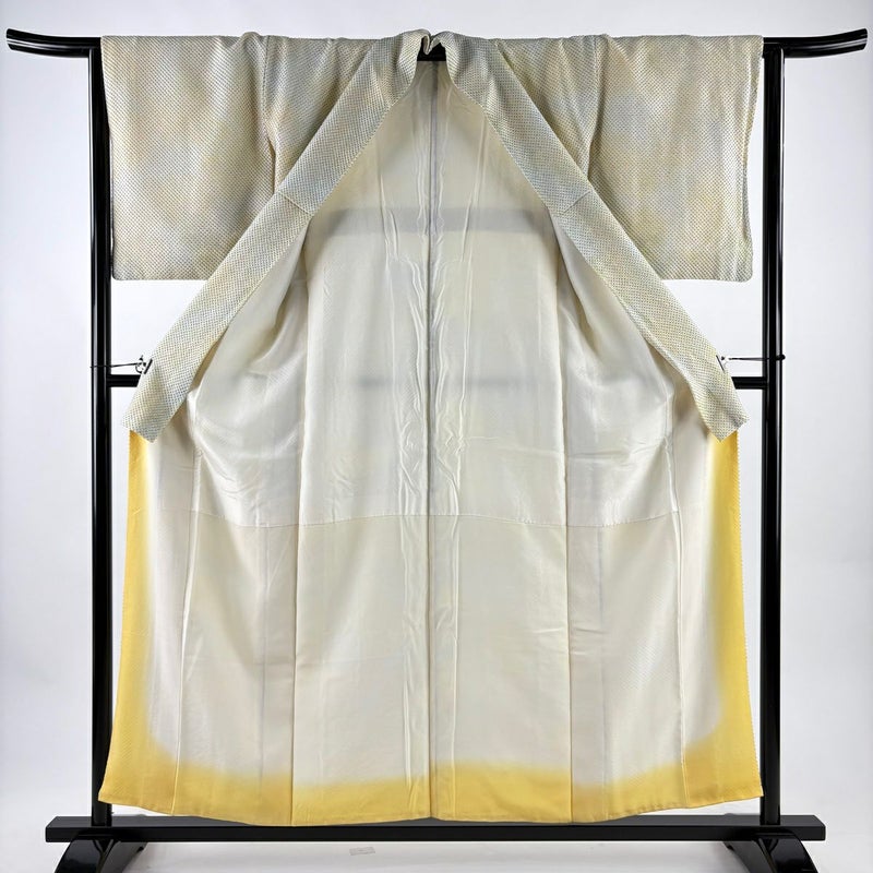 【着物ランク】秀品 【素材】正絹 【身丈】約156cm 【裄丈】約64cm 【袖丈】約48cm 【袖幅】約33cm 【前幅】約23cm 【後幅】約28.5cm 【サイズ】M 【着物仕立て】袷 【着用時期】10~5月 【状態ランク】ランクA 【着物着用シーン】気軽なパーティー、観劇、食事会、正月、気軽なお茶会、街着