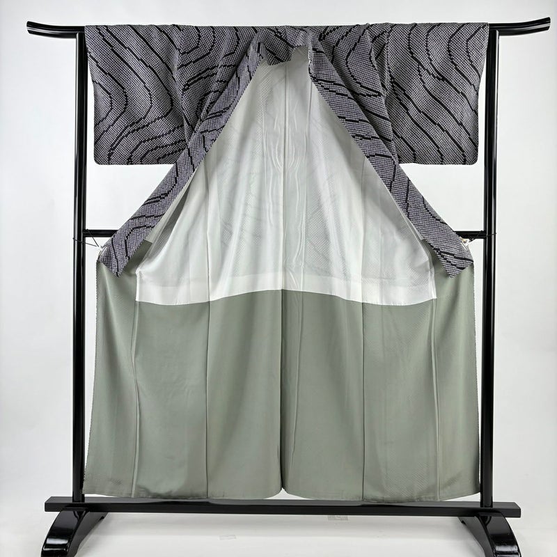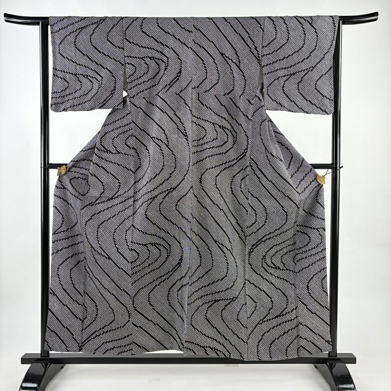 【小紋】 黒系 黒 秀品 A 約150cm~約159cm 裄丈65cm (M)size 袖丈46cm以下 7990-9980 美品 二万以下