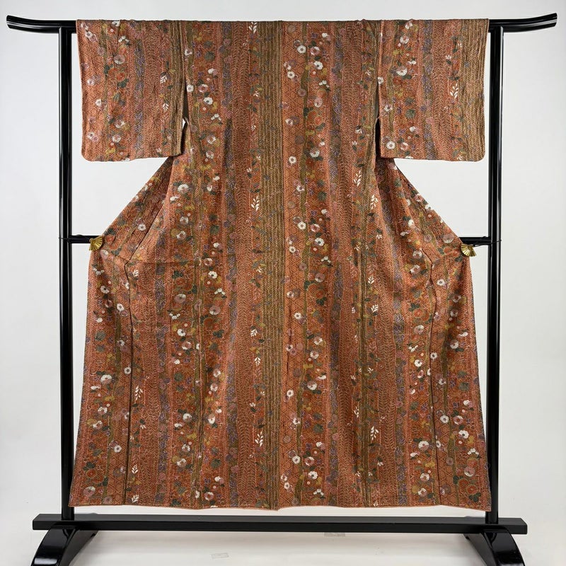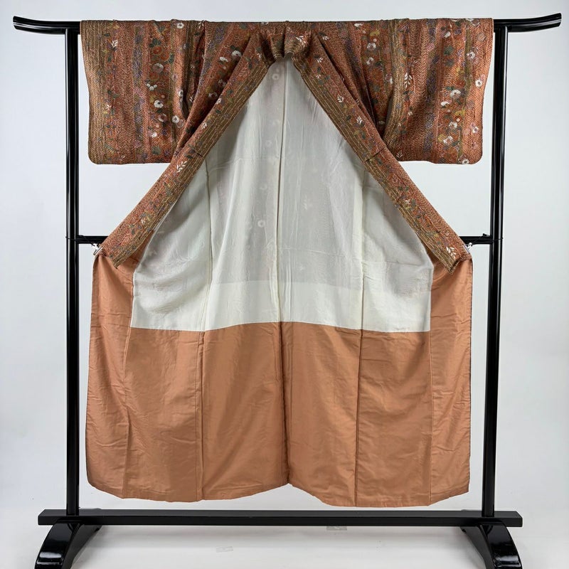 【着物ランク】秀品 【素材】正絹 【身丈】約153.5cm 【裄丈】約63cm 【袖丈】約44cm 【袖幅】約33cm 【前幅】約23.5cm 【後幅】約29cm 【サイズ】S 【着物仕立て】袷 【着用時期】10~5月 【状態ランク】ランクA 【着物着用シーン】気軽なパーティー、観劇、食事会、正月、気軽なお茶会、街着