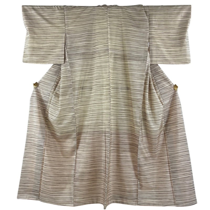【着物ランク】秀品 【素材】正絹 【身丈】約164.5cm 【裄丈】約68cm 【袖丈】約49cm 【袖幅】約33cm 【前幅】約30.5cm 【後幅】約35cm 【サイズ】L 【着物仕立て】袷 【着用時期】10~5月 【状態ランク】ランクB 【着物着用シーン】気軽なパーティー、観劇、食事会、正月、気軽なお茶会、街着