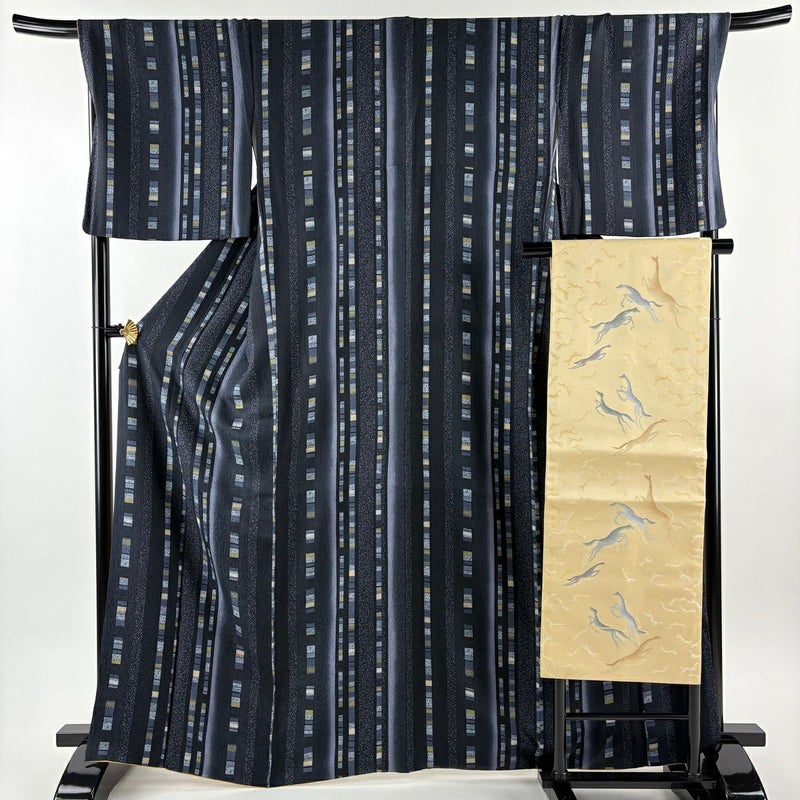 【小紋】 青系 濃紺 秀品 A 約160cm~約169cm 裄丈69cm以上 (L)size 袖丈49cm 9990-29990 美品 五万以下