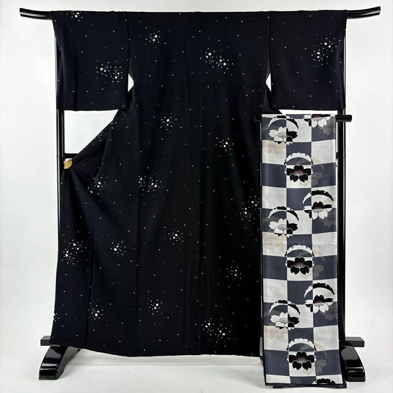 【小紋】 黒系 黒 秀品 A 約160cm~約169cm 裄丈67cm-68cm (L)size 袖丈47cm 9990-29990 美品 五万以下
