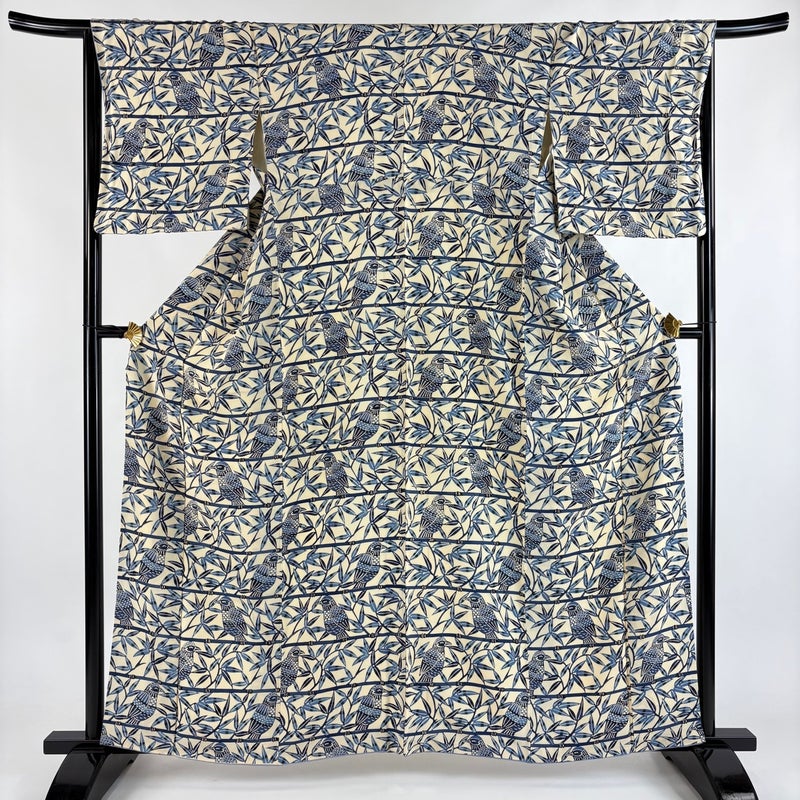 【小紋】 白系 クリーム 秀品 C 約160cm~約169cm 裄丈63cm-64cm (M)size 袖丈48cm 4000-7980 二万以下