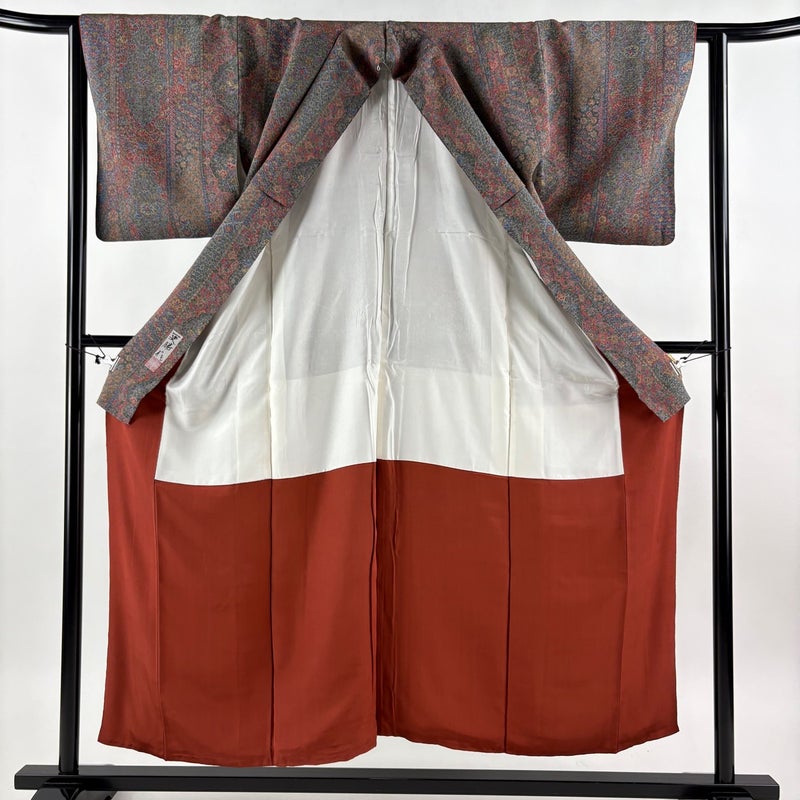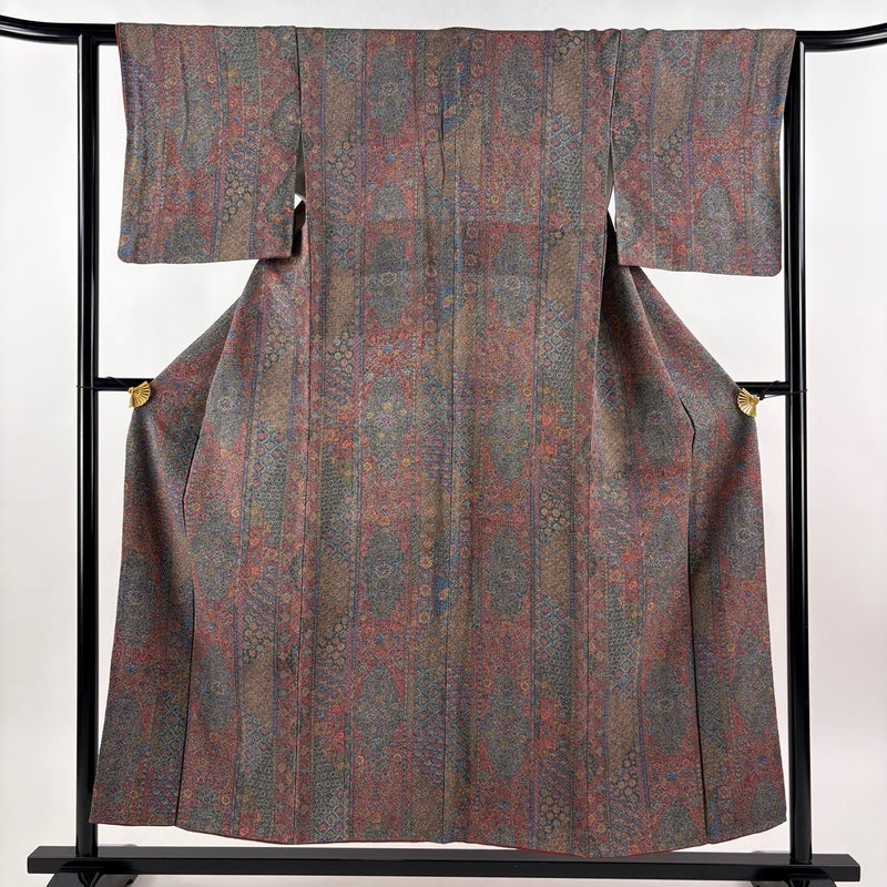 【小紋】 赤系 赤茶 秀品 A 約150cm~約159cm 裄丈63cm-64cm (S)size 袖丈47cm 7990-9980 美品 二万以下