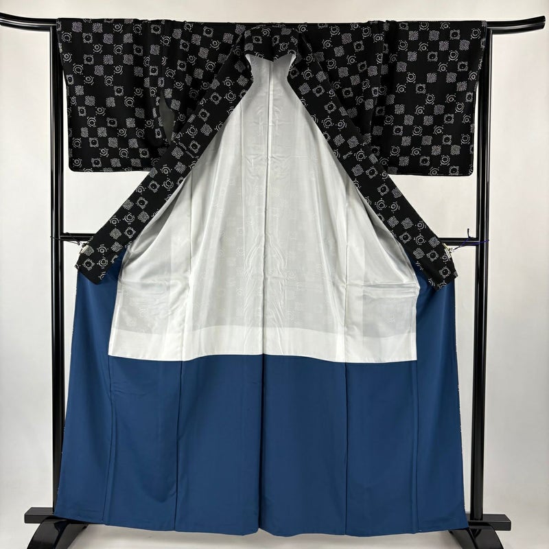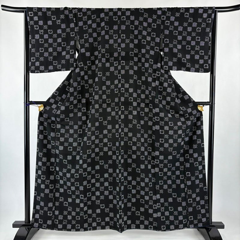 【小紋】 黒系 黒 秀品 A 約160cm~約169cm 裄丈66cm (M)size 袖丈48cm 7990-9980 美品 二万以下