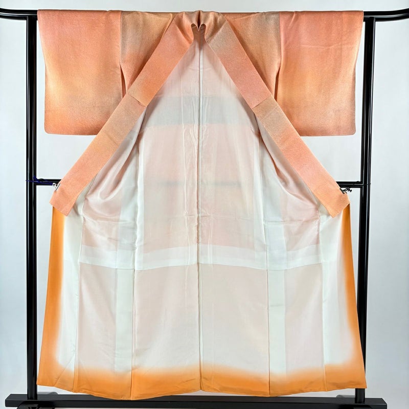 【小紋】 赤系 オレンジ 秀品 A 約150cm~約159cm 裄丈62cm以下 (S)size 袖丈48cm 7990-9980 美品 二万以下