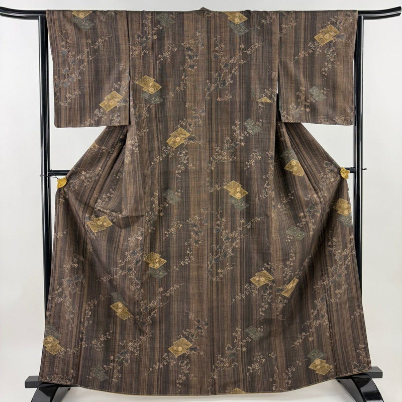 【小紋】 茶系 焦茶色 秀品 B 約160cm~約169cm 裄丈63cm-64cm (M)size 袖丈49cm 4000-7980 二万以下