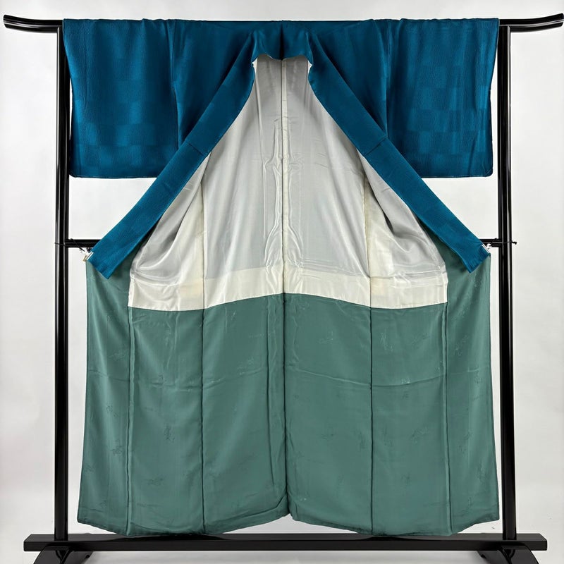 【小紋】 青系 青緑 秀品 A 約150cm~約159cm 裄丈65cm (M)size 袖丈47cm 7990-9980 美品 二万以下