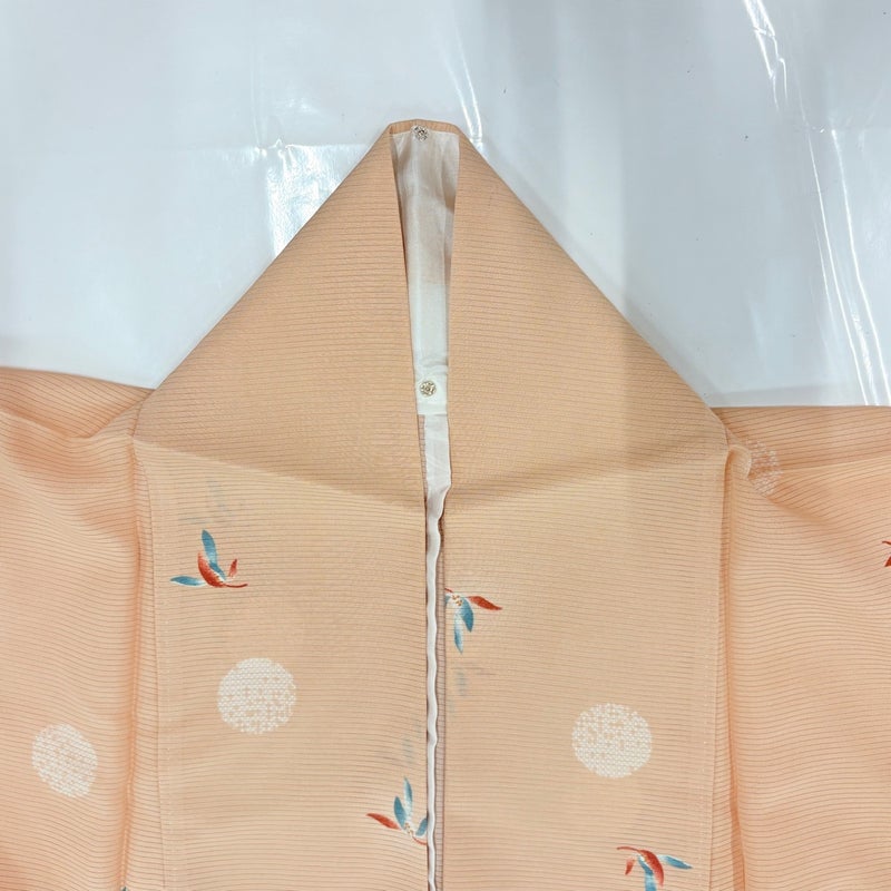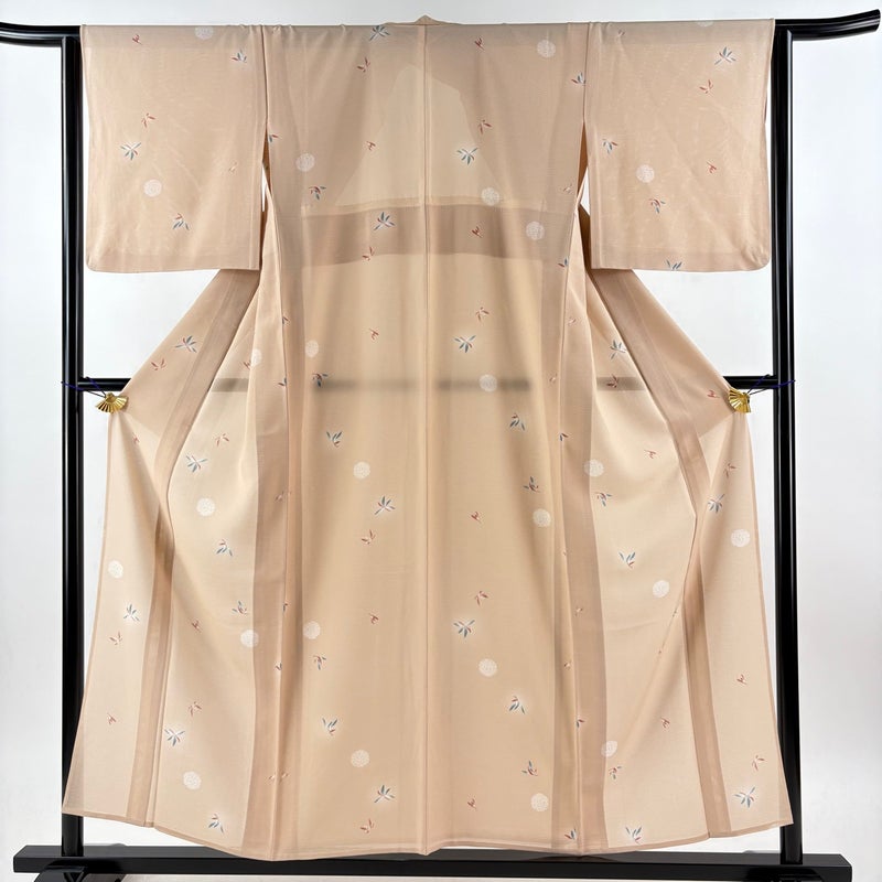 【着物ランク】秀品 【素材】正絹 【身丈】約156cm 【裄丈】約62.5cm 【袖丈】約47cm 【袖幅】約33.5cm 【前幅】約25.5cm 【後幅】約29.5cm 【サイズ】S 【着物仕立て】薄物 【着用時期】7~8月 【状態ランク】ランクA 【着物着用シーン】気軽なパーティー、観劇、食事会、正月、気軽なお茶会、街着