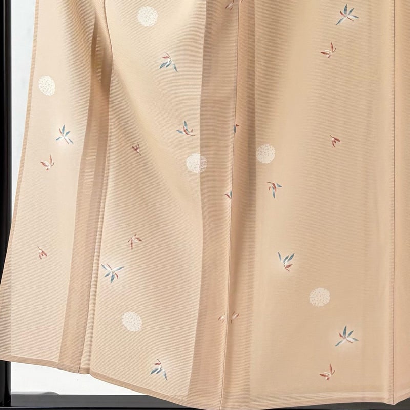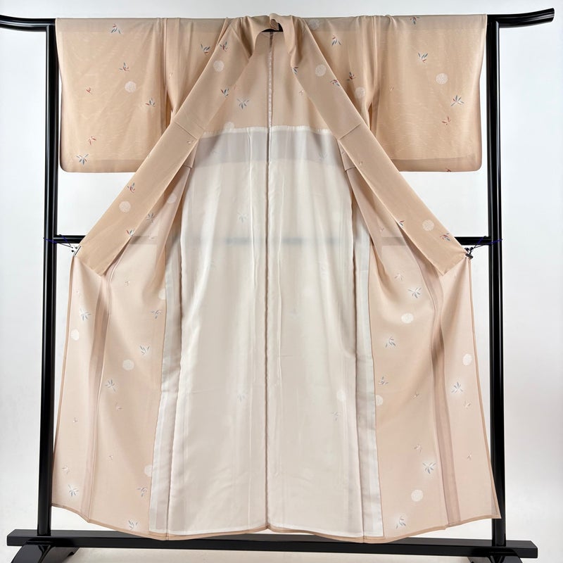 【小紋】 赤系 ピンクベージュ 秀品 A 約150cm~約159cm 裄丈62cm以下 (S)size 袖丈47cm 9990-29990 美品 二万以下