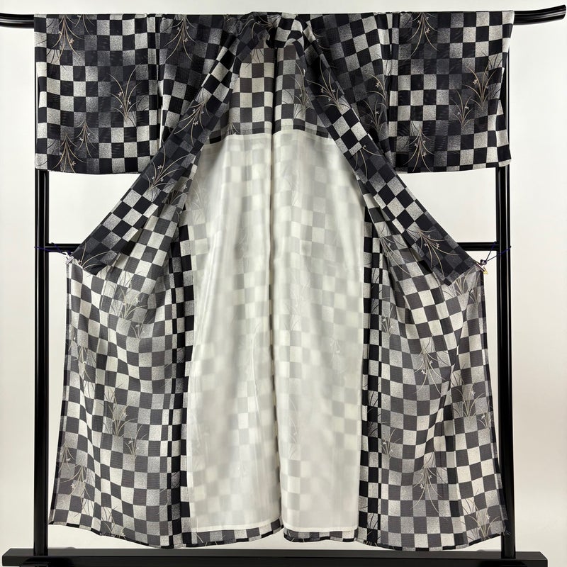 【小紋】 灰色系 黒灰 秀品 B 約150cm~約159cm 裄丈67cm-68cm (L)size 袖丈46cm以下 9990-29990 二万以下