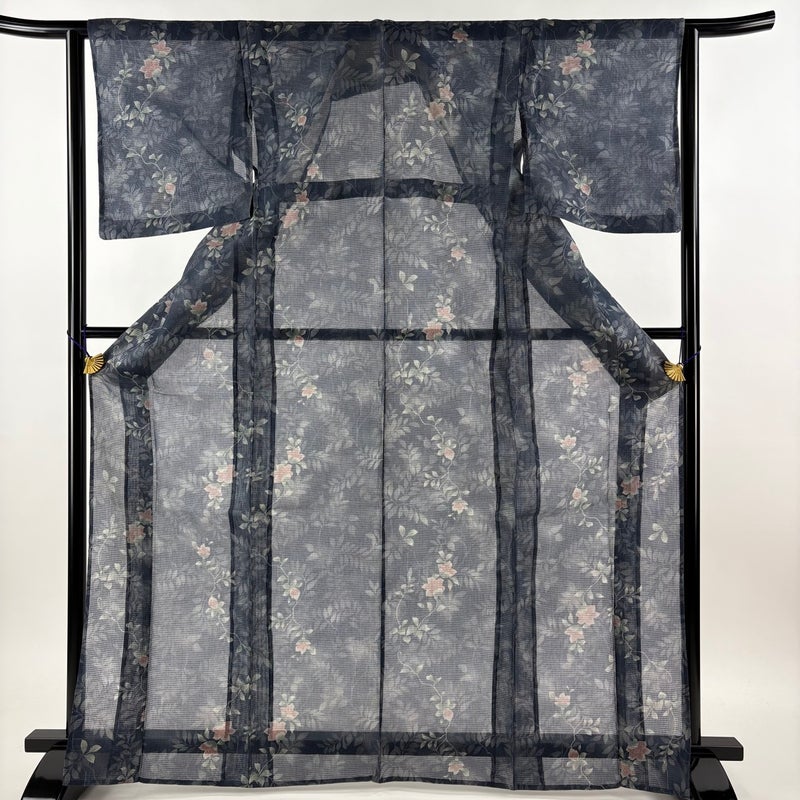 【着物ランク】秀品 【素材】正絹、綿 【身丈】約169.5cm 【裄丈】約63cm 【袖丈】約49.5cm 【袖幅】約31.5cm 【前幅】約23.5cm 【後幅】約28.5cm 【サイズ】S 【着物仕立て】薄物 【着用時期】7~8月 【状態ランク】ランクC 【着物着用シーン】気軽なパーティー、観劇、食事会、正月、気軽なお茶会、街着