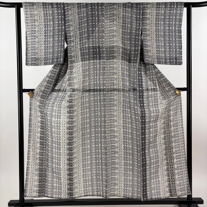 【着物ランク】秀品 【素材】正絹 【身丈】約156cm 【裄丈】約61.5cm 【袖丈】約49cm 【袖幅】約32cm 【前幅】約22.5cm 【後幅】約29.5cm 【サイズ】S 【着物仕立て】薄物 【着用時期】7~8月 【状態ランク】ランクB 【着物着用シーン】気軽なパーティー、観劇、食事会、正月、気軽なお茶会、街着