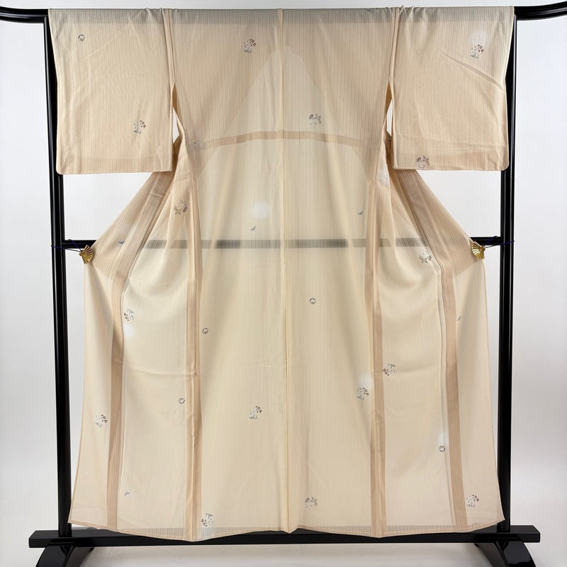 【小紋】 白系 ベージュ 名品 B 約150cm~約159cm 裄丈66cm (M)size 袖丈47cm 9990-29990 五万以下