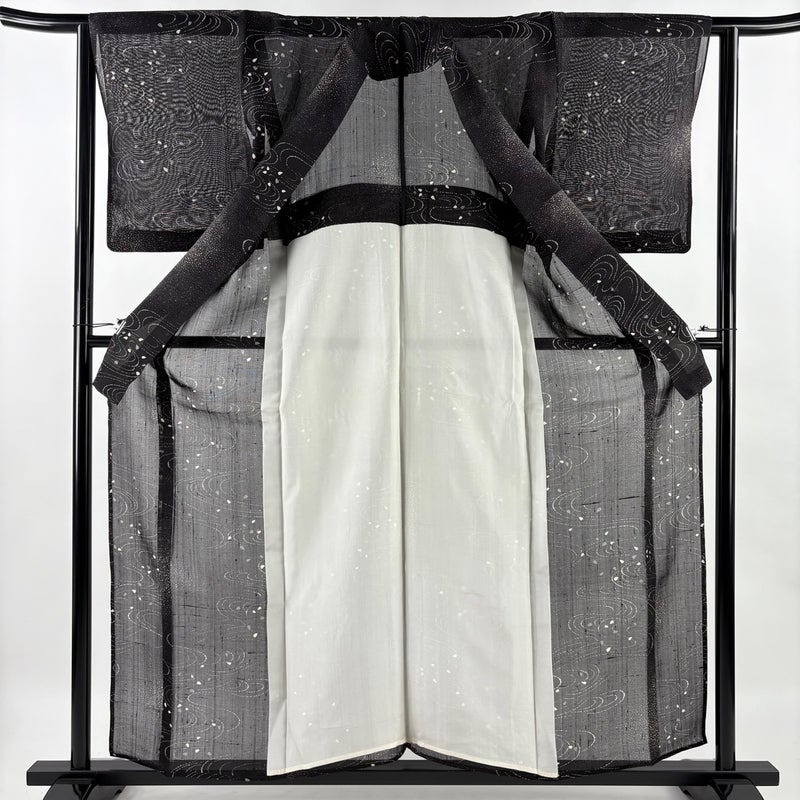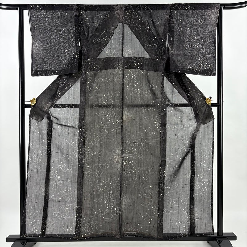 【小紋】 黒系 黒 名品 A 約150cm~約159cm 裄丈62cm以下 (S)size 袖丈49cm 9990-29990 美品 五万以下