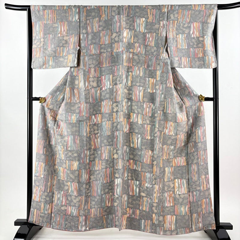 【小紋】 灰色系 灰色 秀品 A 約160cm~約169cm 裄丈65cm (M)size 袖丈47cm 7990-9980 美品 二万以下