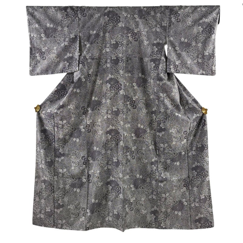 【小紋】 灰色系 黒灰 名品 A 約150cm~約159cm 裄丈63cm-64cm (M)size 袖丈49cm 9990-29990 美品 二万以下