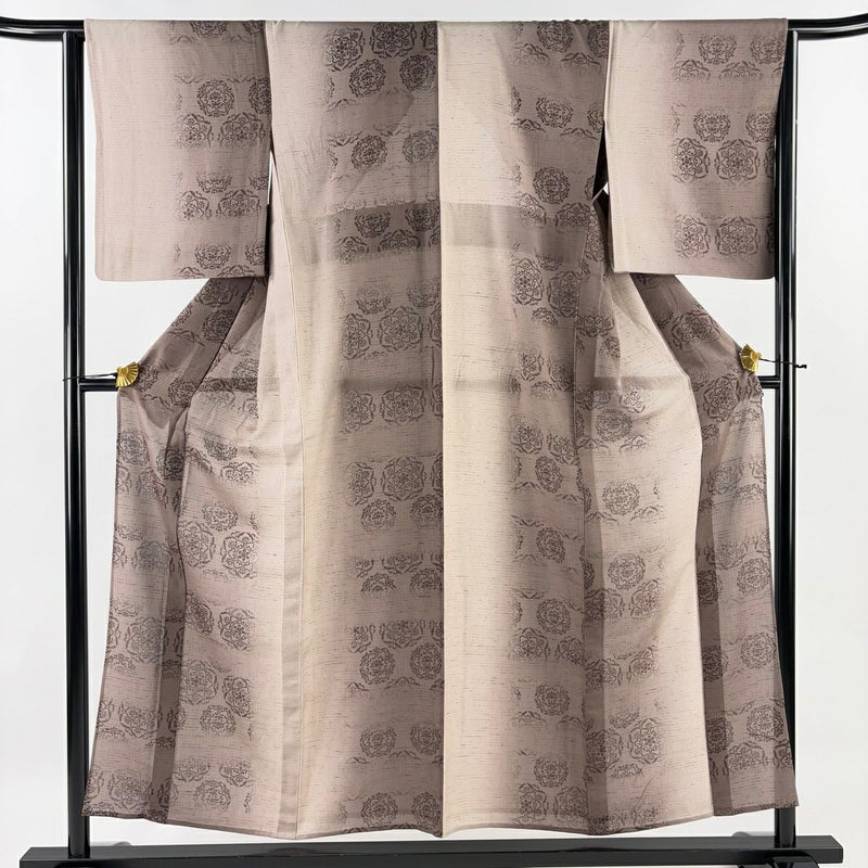【着物ランク】名品 【素材】正絹 【身丈】約154cm 【裄丈】約63cm 【袖丈】約48cm 【袖幅】約32.5cm 【前幅】約24cm 【後幅】約29.5cm 【サイズ】S 【着物仕立て】単衣 【着用時期】6/9月 【状態ランク】ランクA 【着物着用シーン】気軽なパーティー、観劇、食事会、正月、気軽なお茶会、街着
