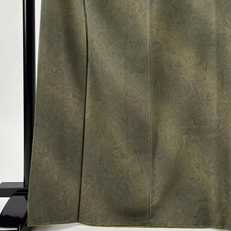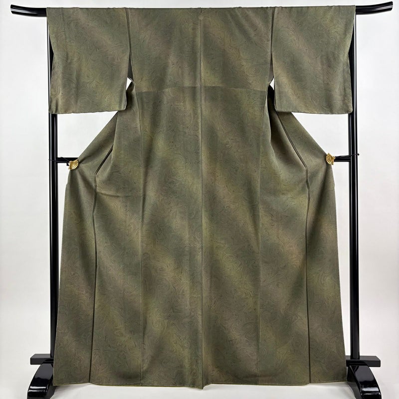 【小紋】 茶系 茶緑色 名品 A 約160cm~約169cm 裄丈66cm (M)size 袖丈49cm 9990-29990 美品 二万以下