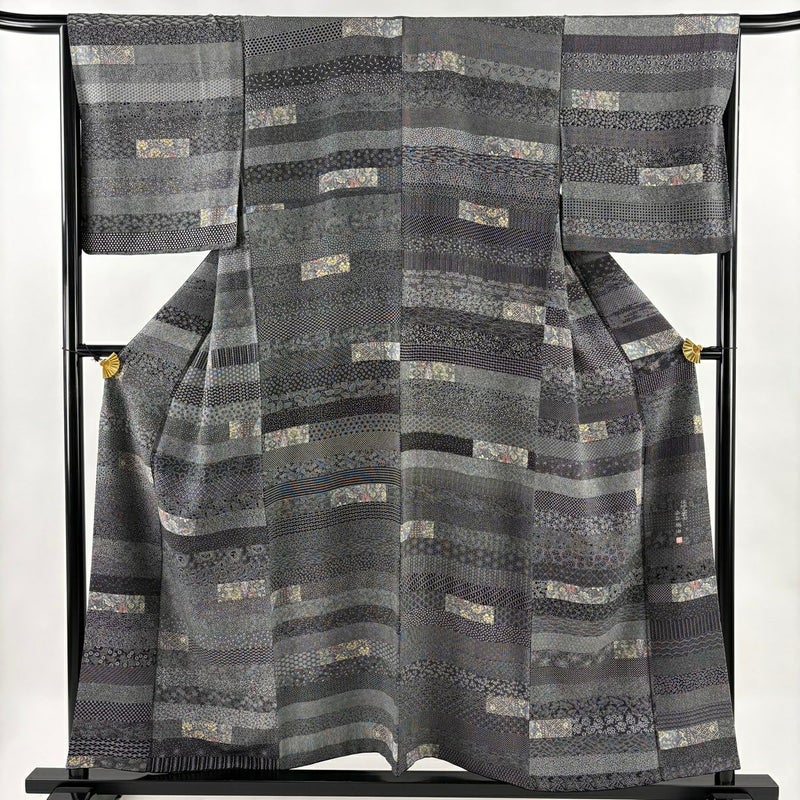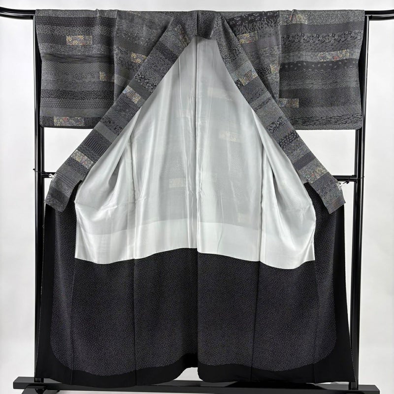 【小紋】 黒系 黒 名品 A 約150cm~約159cm 裄丈66cm (M)size 袖丈48cm 9990-29990 美品 二万以下