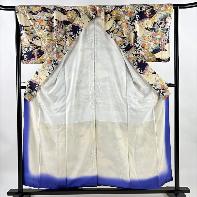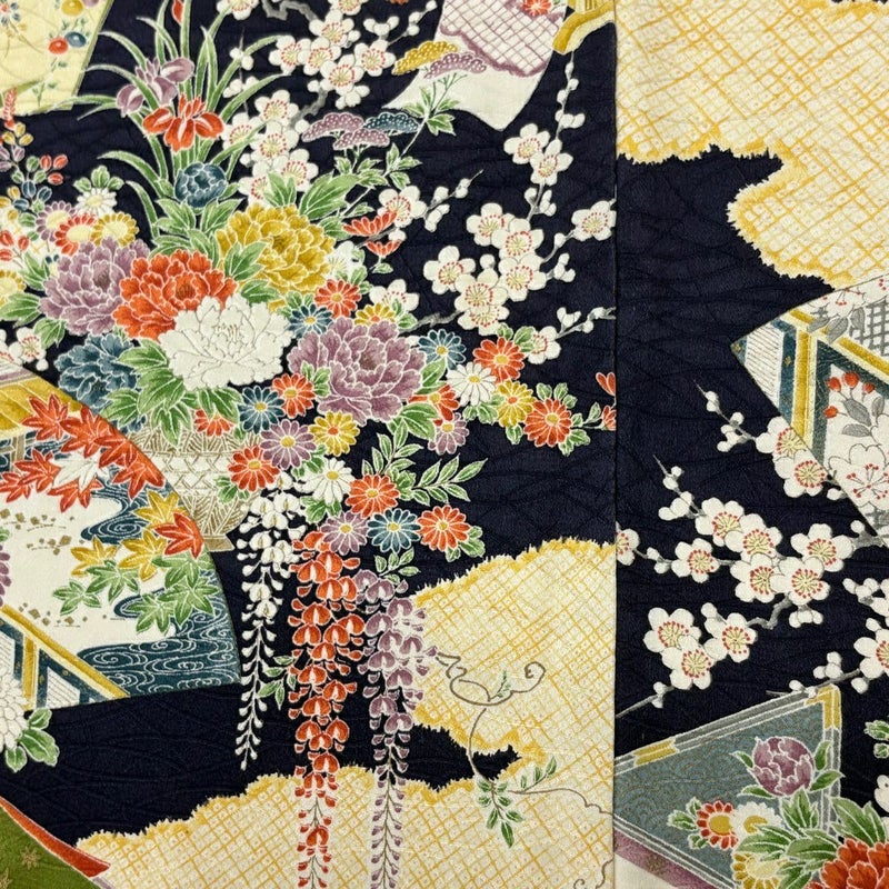 【着物ランク】優品 【素材】正絹 【身丈】約156cm 【裄丈】約65cm 【袖丈】約48.5cm 【袖幅】約32.5cm 【前幅】約24.5cm 【後幅】約28.5cm 【サイズ】M 【着物仕立て】袷 【着用時期】10~5月 【状態ランク】ランクB 【着物着用シーン】気軽なパーティー、観劇、食事会、正月、気軽なお茶会、街着