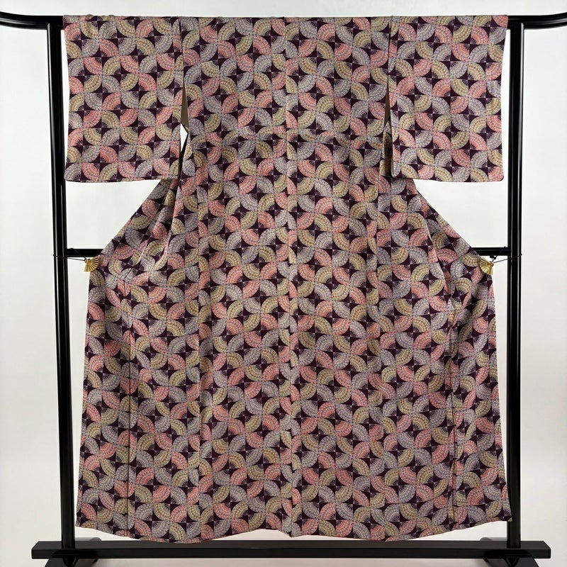 【小紋】 紫系 濃紫 優品 A 約150cm~約159cm 裄丈62cm以下 (S)size 袖丈49cm 4000-7980 美品 二万以下