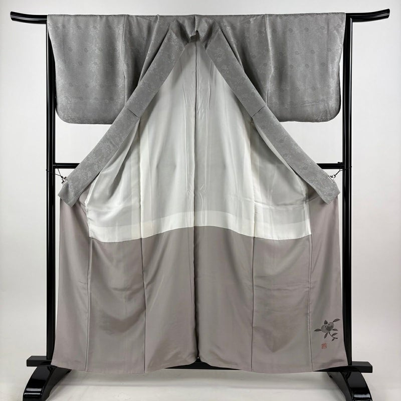 【着物ランク】秀品 【素材】正絹 【身丈】約161.5cm 【裄丈】約65.5cm 【袖丈】約49cm 【袖幅】約34cm 【前幅】約26.5cm 【後幅】約30cm 【サイズ】M 【着物仕立て】袷 【着用時期】10~5月 【状態ランク】ランクB 【着物着用シーン】気軽なパーティー、観劇、食事会、正月、気軽なお茶会、街着