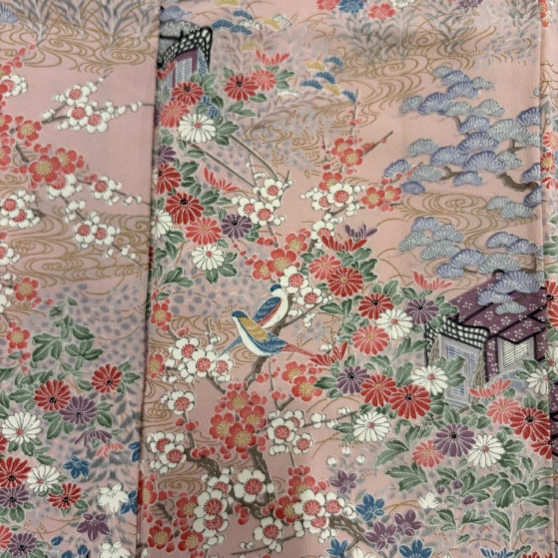 【着物ランク】優品 【素材】正絹 【身丈】約161cm 【裄丈】約64cm 【袖丈】約49cm 【袖幅】約33cm 【前幅】約22cm 【後幅】約28cm 【サイズ】M 【着物仕立て】袷 【着用時期】10~5月 【状態ランク】ランクB 【着物着用シーン】気軽なパーティー、観劇、食事会、正月、気軽なお茶会、街着